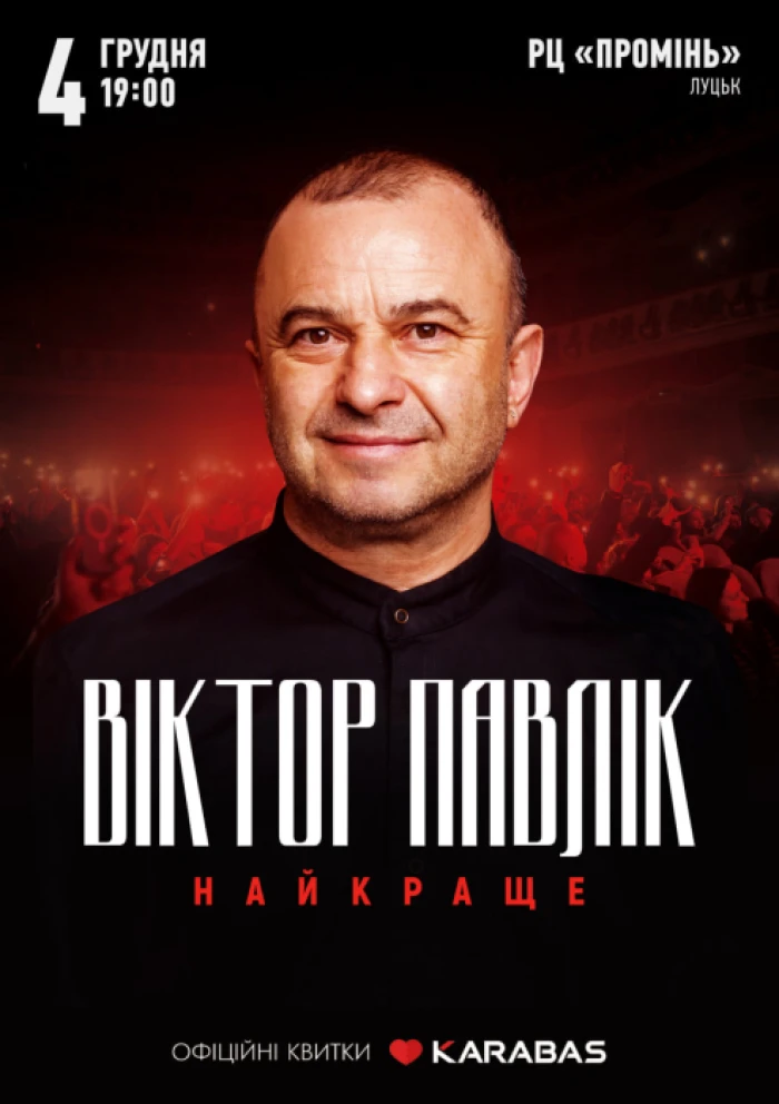 Квитки на концерт встигніть обрати на сайті https://lutsk.karabas.com/viktor-pavlik-naykrashche-13/order/