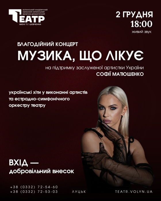 Благодійний концерт відбудеться 2 грудня о 18:00 у театрі.