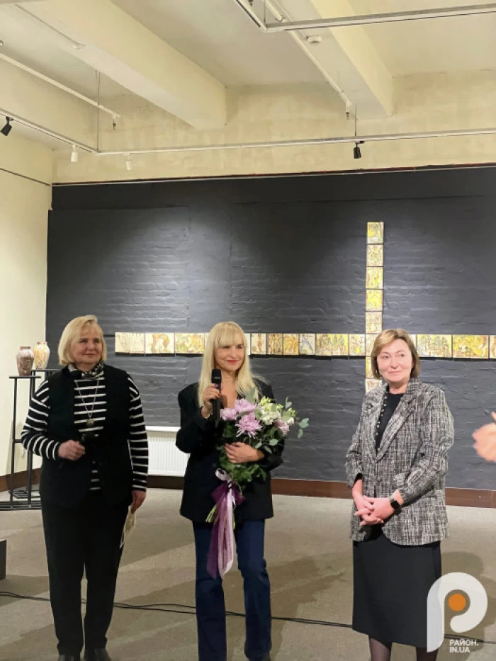 – Це цикл мініатюр «Калевала», присвячений українським жінкам-художницям, їхній незламності та творчому опору. У роботі 43 мініатюри, створені в техніці косівської кераміки на кахлях. Мініатюри розташовані у вигляді хреста.