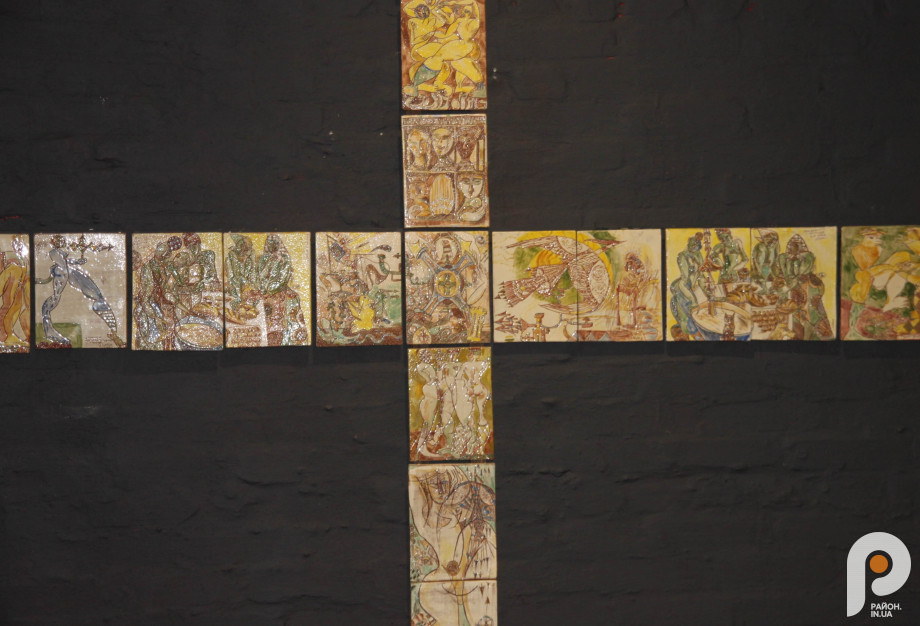 На кахлях зображений птах за мотивами мозаїчного панно Алли Горської, яке росіяни зруйнували в Маріуполі. Також тут є образи жінок, які печуть хліб. Основою цього сюжету стала розповідь моєї знайомої зі Львова, яка разом із подругами щодня збирається о п’ятій ранку й пече хліб для військових. Тут зображена й жінка, яка народжує хлопчика.
