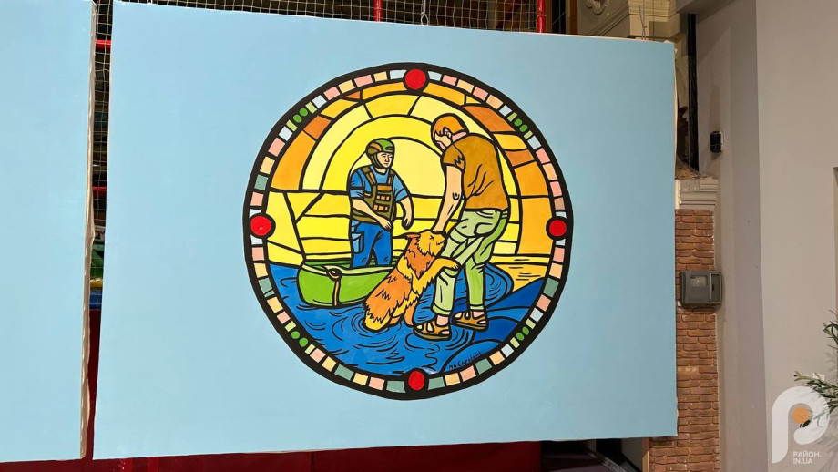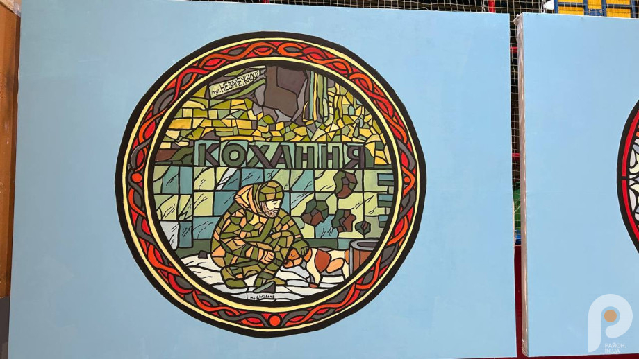 Перший вітраж, «Кохання», показує військового, який обережно нахиляється до пораненої собаки серед зруйнованого міста. За словами художниці, ця сцена символізує не романтичне кохання, а безумовне, здатне вижити у темні часи, коли людяність стає головною цінністю.