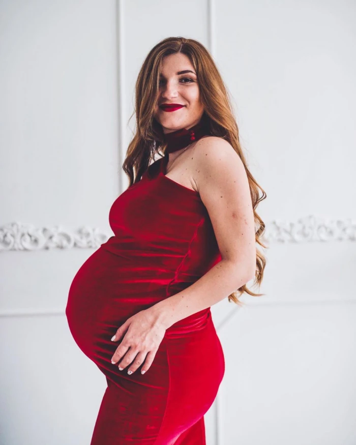 Маркетологиня Іванна Стельмащук разом зі своїм чоловіком Антоном взяла участь у зворушливій фотосесії. До слова, лучанка перебуває на останньому місяці вагітності. Іванна позувала у червоній оксамитовій сукні, а її коханий – в класичному костюмі.