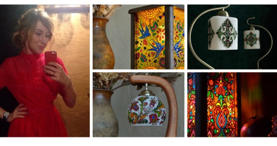 Авторські вироби Валентини Кульпінової – це унікальні декоративні нічники, лампи та фоторамки з розписом скла у традиційному стилі.