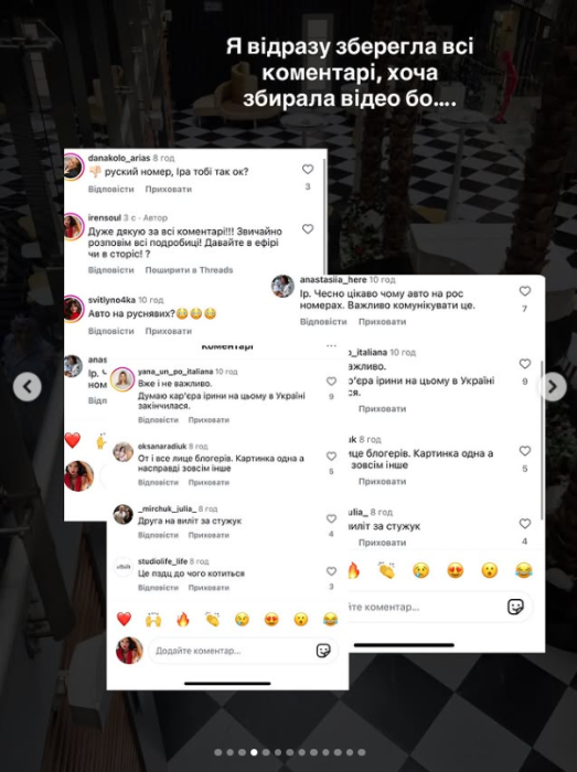 Увагу на це звернули підписники, мовляв, у час війни це не ок. Ірина видалила відео і незабаром опублікувала допис, в якому спробувала виправдати свій вчинок.