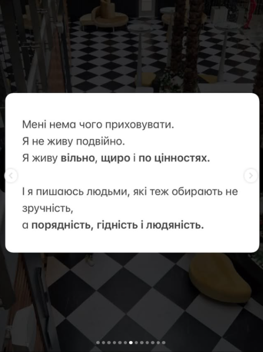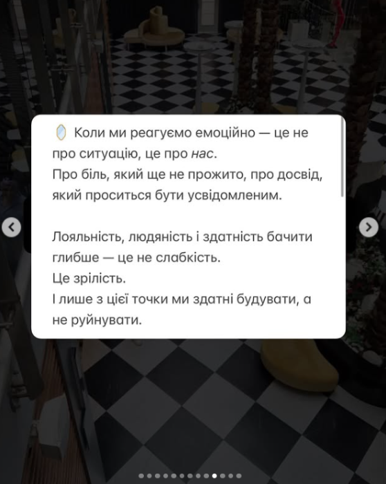 Я за те, щоб і ви не тратили свій час, бо тут немає подвійного дня, і номери авто друзів , друзів які обрали жити в Туреччині, і підтримувати нас ! Тут все! Я не соромлюся людей, які поряд зі мною. Я пишаюсь тими, хто не зрадив совість і продовжує допомагати, творити, розвивати. Бо справжня лояльність — це не мовчати, але й не судити. Ми або поширюємо світло, або множимо темряву. І лише від фокусу кожного з нас залежить, що переможе. Я впевнена кожен , хто бодай раз комунікації зі мною , точно знає і мою патріотичну позицію і любов до людей ! Тому навіть попри всі спроби створити бурю , є точно ті люди, які вміють вже ділити ЕМОЦІЇ, РЕАКЦІЇ, СТРАХИ ! І питання чому людину, яку ви знаєте роками Ви готові спалити на вогнищі!?», – написала Дяченко.