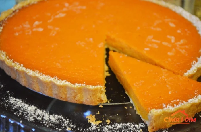 Тісто розподілити руками по дну дека, зробити бортики, вилити начинку. Запікати за температури 200 градусів 10 хв і ще при 170 градусах 45 хв.