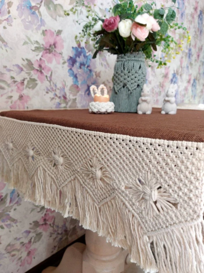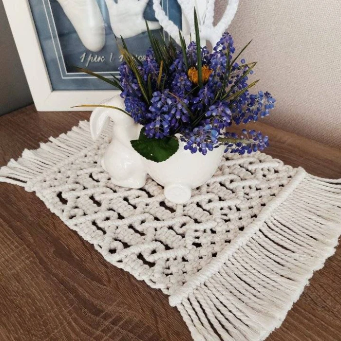Майстриня Валентина Шаранда створює красу у техніці макраме. Макраме – це старовинна техніка вузликового плетіння, яка використовує вузли для створення різноманітних виробів. Це один із найдавніших видів рукоділля, який використовується для виготовлення декоративних та практичних речей, таких як панно, сумки, прикраси та предмети для декору дому.