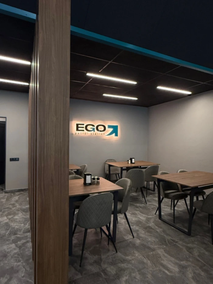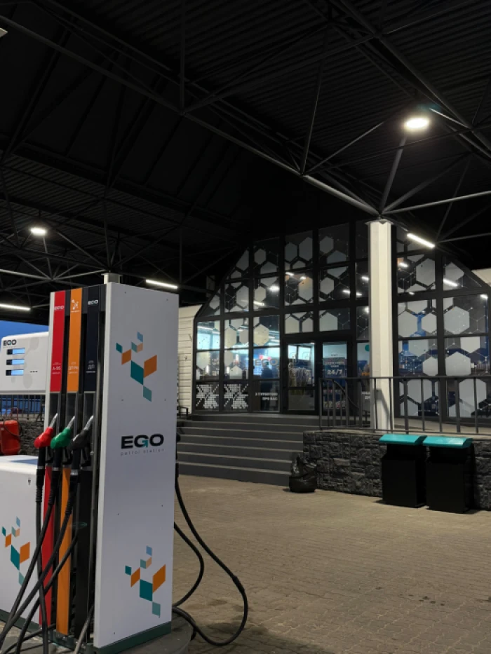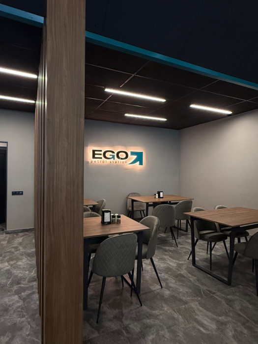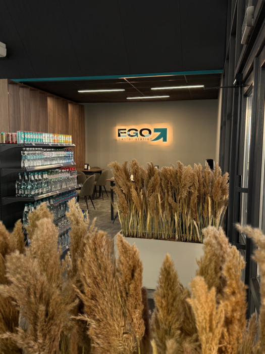 На новій АЗС EGO клієнти можуть не лише заправити авто якісним пальним стандартів Євро, а й смачно поїсти. Тут працює власна кухня, де готують свіжі страви – це повноцінна зупинка для відпочинку в дорозі, а не просто заправка.