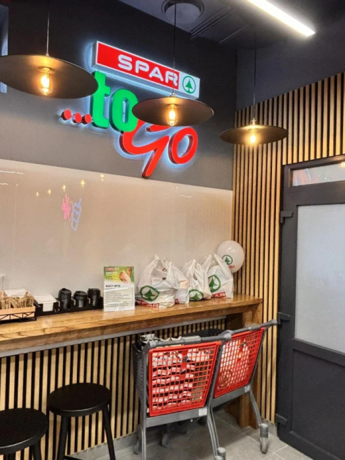 Новий супермаркет площею 390,4 м² побудований за сучасними стандартами SPAR і поєднує у собі комфорт, зручність та широкий асортимент якісних продуктів. У торговій залі облаштовано 4 каси: 1 FTG (fast to go) для швидких покупок і кави з собою, 1 стаціонарну касу та 2 каси самообслуговування (КСО), що дають змогу покупцям обирати зручний спосіб розрахунку.
