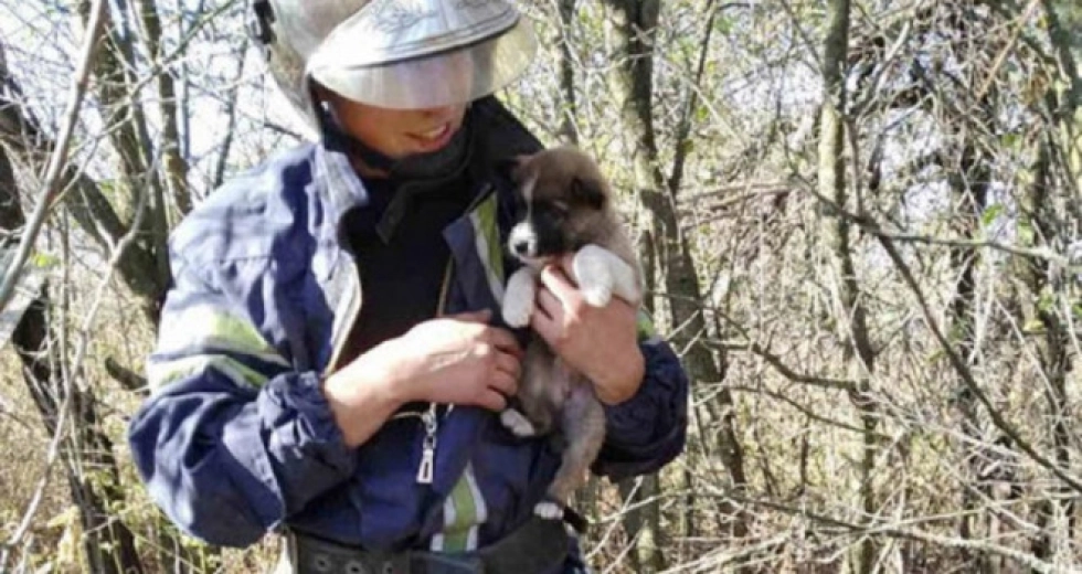 У Володимирі-Волинському рятувальники спустилися в колодязь, в який впало цуценя, і врятували тваринку.
