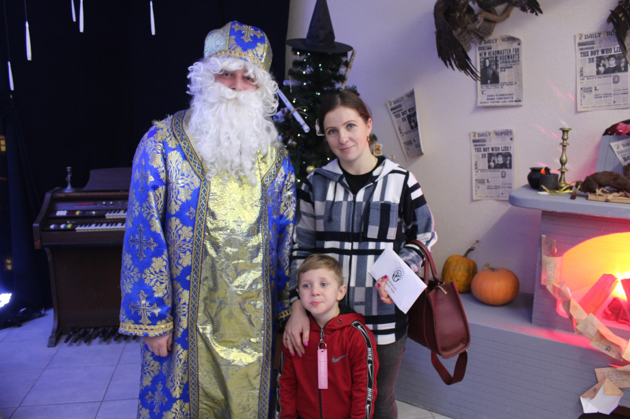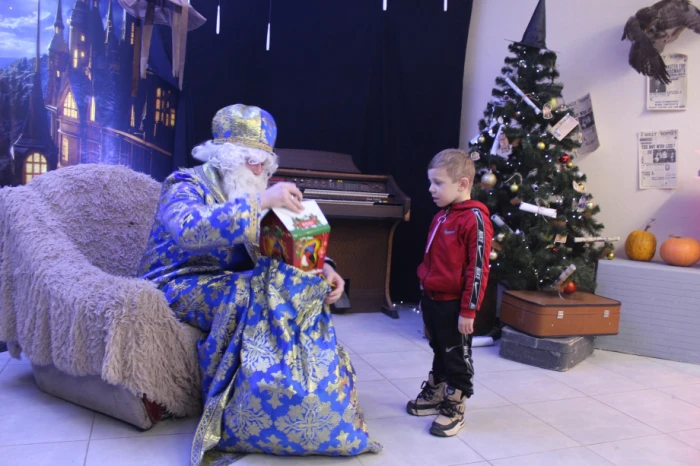 Хлопчик приміряв мантію Гоґвортсу, погрався з казковими героями, розмалював собі на пам’ять сувенір та отримав від доброчинця Миколая солодкий подарунок.